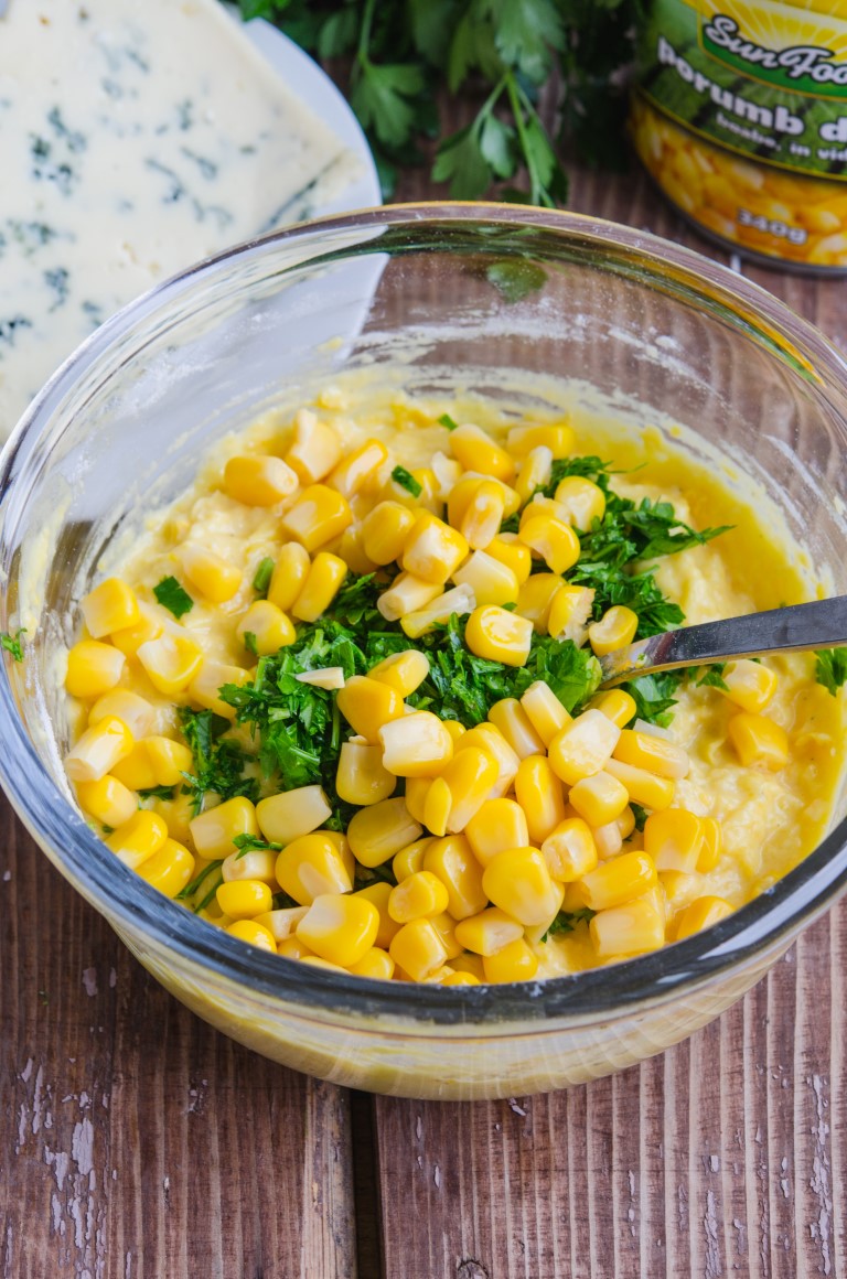 Punem jumatate din cantitatea de porumb intr-un blender si pornim blenderul pentru cateva secunde pana obtinem un piure nu foarte fin.