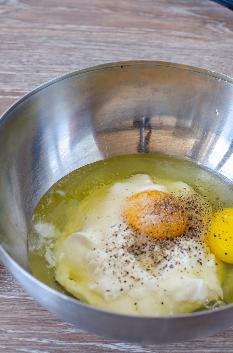 Intr-un bol puneti iaurtul, ouale intregi, sarea si piperul